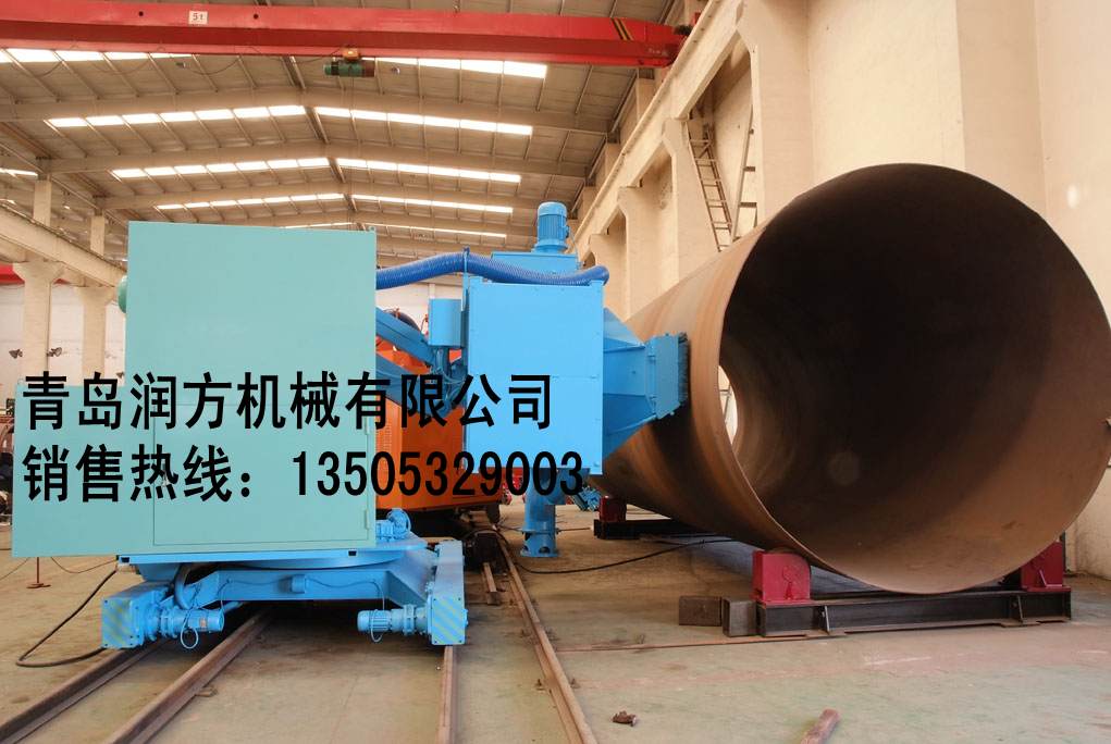 本机主要用来清理大型管道及钢罐内外壁,使管道及钢罐的表面消除氧化皮和旧的油漆等附着物质,得到一定的表面粗糙度后,即可进行表面涂装保护层,提高了漆膜的附着力,并提高塔筒的抗疲劳强度和抗腐蚀能力,改善了塔筒的内在质量